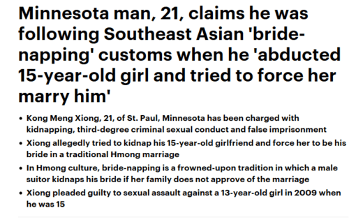 the Asian equivalent of wild Indians–as such they fought bravely alongside Special Forces in Vietnam and Laos, but when they were brought, after the Vietnam War to America–specifically Wausau, Wisconsin–they’ve created massive problems, caused by being basically primitive tribesmen. Some of their antics feature in Ann Coulter’s Adios America.