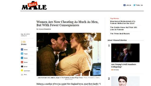 Episode 40 of my podcast is now posted here (with copious links). A decade ago, in a review of Mike Nichols’ execrable film Closer, I asked, “Is adultery now a chick thing? I mean in the sense of it being initiated mostly by them.” In Part 1, we discuss this hypothesis with reference to a much-discussed article in the Beta Male (!) section of New York magazine. It seems that the AltRight is right again, that cuckoldry and cucks are indeed significant cultural indicators. With no trace of irony, the author, Alyssa Giacobbe, makes the case for hypergamy as female empowerment. But what of sisterly solidarity? Well, it’s a sauve qui peut world we live in, and let the Devil take the hindmost. Amusingly, this article is illustrated with a still from the David Mamet-scripted remake of James M. Cain’s The Postman Always Rings Twice. Of course (spoiler alert) adultery didn’t work out too well for Cora Papadakis, but we can’t expect our latter-day cultural arbiters to betray much familiarity with the source material of their promiscuous cultural references.