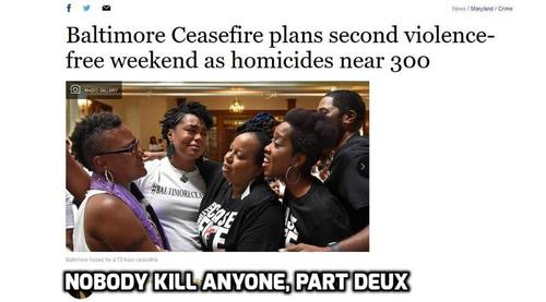 Previously from Paul Kersey: CeaseFire! Blacks in 70% Black Baltimore Challenged to go Three Days (Aug 4 -6) with “Nobody kill Anybody” Campaign