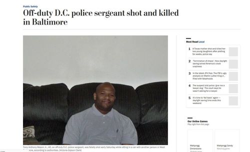 As you can see above, there was a murder in Baltimore—DC police officer Tony Anthony Mason Jr., 40, shot dead tonight.