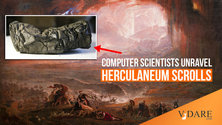 Here’s some good news. There’s been a million dollar contest going on to figure out how to use high tech to read a Herculaneum library of extremely fragile scrolls that were damaged by the 79 A.D. Mt. Vesuvius eruption. They can’t be unrolled without crumbling into dust. But now we have particle accelerators. The extremely vague scans have been publicly posted online and computer scientists have been invited to take a crack at reading them.