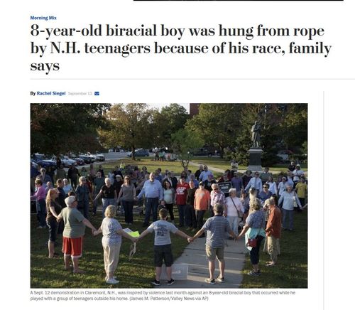 Local media in New Hampshire and now The Washington Post want us to believe that teenagers in New Hampshire tried to lynch a little boy because he is biracial.