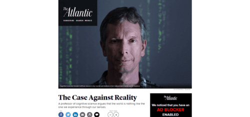If you remember your Introductory Philosophy course you will know that the opposite of materialism (there is only matter: mind is an illusion) is idealism (there is only mind: matter is an illusion). I had supposed philosophical idealism to have died out in this age of brain scanning and smart computers, but cognitive scientist Donald Hoffman proved me wrong.Well, Hoffman did an interview for the pop-science magazine Quanta last month (reprinted at TheAtlantic.com.) It's caused a minor Twitterstorm.In an astonishing presentation, Hoffman described his work on evolutionary game theory. Using a powerful computer he has modeled the evolution across thousands of generations of imaginary species with such-and-such characteristics in environments with so-and-so characteristics. He wanted to compare evolutionary fitness — how well an organism is adapted to its environment — with truth — how accurately the organism perceives its environment. In his words: "Does natural selection favor veridical perception?" The answer from his models is no: "Truth goes extinct every time except when tuned to fitness."