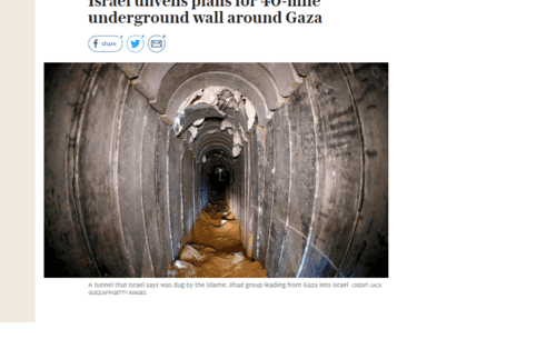 Israel unveils plans for 40-mile underground wall around Gaza[Comment at Unz.com]Raf Sanchez, gaza border