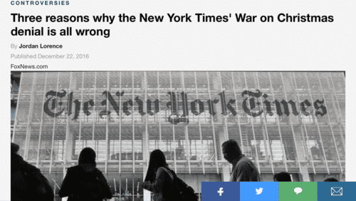 Lawyer Jordan Lorence of the Alliance Defending Freedom responds to the NYT in Controversies | Three reasons why the New York Times' War on Christmas denial is all wrong, FoxNews.com, December 22, 2016. (Links in original).