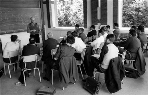 Alexandre Grothendieck, at the blackboard, during a lesson, south of Paris, in the 1960's.