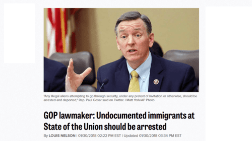 [GOP lawmaker: Undocumented immigrants at State of the Union should be arrested, by Louis Nelson, Politico, January 30, 2018]