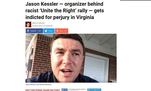 'Unite the Right' organizer Jason Kessler released on perjury chargeProsecutions for perjury in these situations are extremely unusual. Specifically, blacks commit assault, assault and battery, and perjury with such frequency that if you prosecuted them the way the Albemarle County Commonwealth Attorney’s Office is prosecuting Jason Kessler, at least half of America’s blacks would be in jail or prison.CHARLOTTESVILLE, Va. (WHSV) —UPDATE (Oct. 4, 2017):