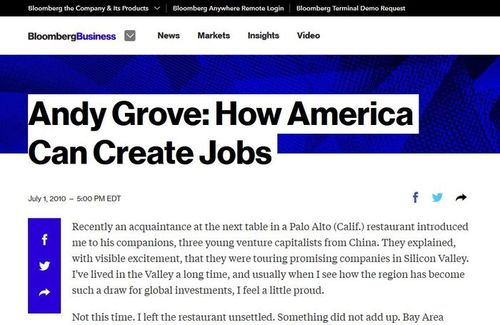 Andy Grove: How America Can Create JobsRead the whole thing there.July 1, 2010 — 2:00 PM PDT