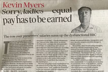 Framing his piece as an attack on the push to close the pay gap at the BBC, Mr. Myers wrote: