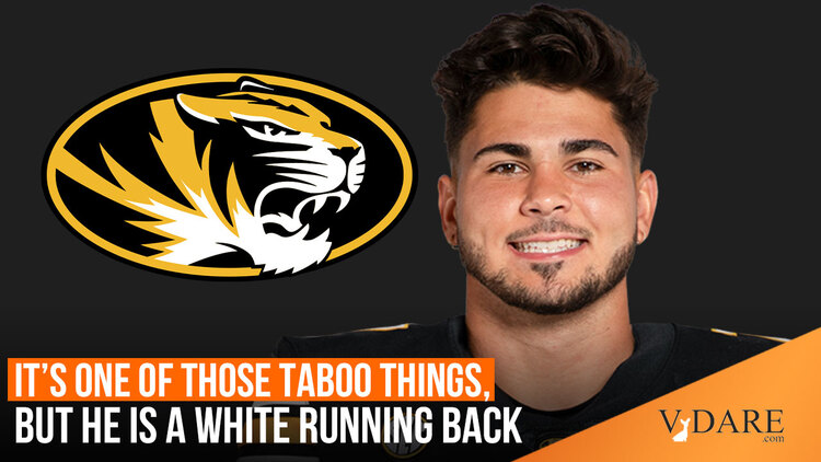 Cody Schrader is an All-American running back who rushed for 1500 yards for the U. of Missouri Tigers this season, who play in the SouthEastern Conference, the #1 conference in college football. And he’s white.