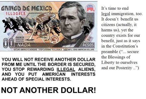 Here's an armchair-guerrilla activity I've suggested before to VDARE.com readers: Use the postage-page envelopes typically provided with the major parties' fundraising letters to send them tokens of your immigration-related disgust.