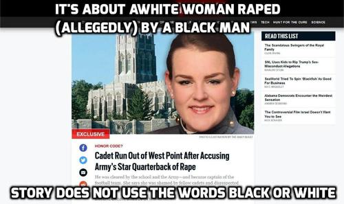 Here’s a long article from the Daily Beast recounting a former West Point lady cadet’s claim to have been raped by the Army football team’s star quarterback: