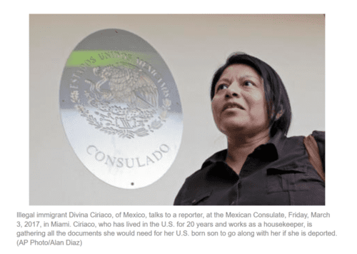 Consulates from Mexico and other Central American nations have been juggling numerous inquiries in recent months from migrants concerned about their fate and that of their U.S.-born children. Zabalgoitia said the increase in requests for documents and help is "enormous," as he pointed to a waiting room with dozens of people carrying folders of documents in need of birth certificates, Mexican passports and other identifications. "I used to sign two birth certificates a week. Only yesterday, I signed 15."Remember, according to Mexican law, any child of a Mexican born anywhere in the world is entitled to be a Mexican citizen. And that’s great, as we need to abolish the anchor baby loophole, and future anchor babies can just go home to Mexico.