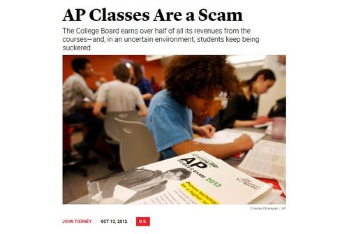 AP Classes Are a ScamBy the way, I think this John Tierney of The Atlantic is a different person than the John Tierney of the New York Times, and that both are different from former Congressman John F. Tierney. (In short, there are a lot of Irishmen in American public life.)The College Board earns over half of all its revenues from the courses—and, in an uncertain environment, students keep being suckered.