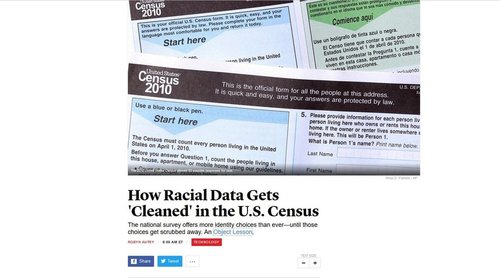 From The Atlantic, an article implying (without quite stating) a conspiracy theory that the government fiddles with the Census counts by race to victimize nonwhites: