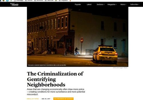 That claim is not just speculative. Over the past two decades, gentrification has become a norm in major American cities. The typical example is a formerly low-income neighborhood where longtime residents and businesses are displaced by white-collar workers and overpriced coffeehouses. But the conventional wisdom that image reflects—that gentrification is a result of an economic restructuring—often leaves out a critical side effect that disproportionately affects communities of color: criminalization.