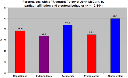 John McCain is more popular among Democrats than he is among Republicans (contemporary binary poll, N = 12,644):