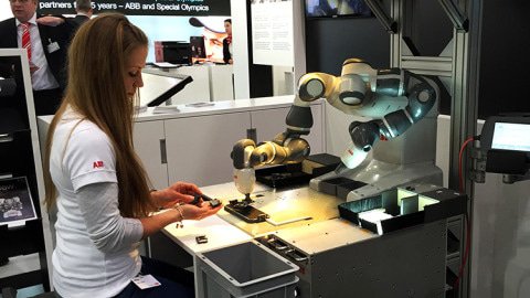 The YuMi robot is marketed as the “world’s first collaborative dual-arm robot” by manufacturer ABB. The machine is safe for close use, unlike larger industrial robots which can be dangerous.