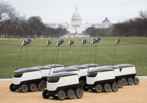 Food Delivery Robots Officially Roll Out In DC Today, Washingtonian, March 9, 2017The first fleet of delivery robots officially rolls out in DC today after two weeks of testing. Starship Technologies teamed up with San Francisco-based delivery company Postmates for the launch, the first in the US.