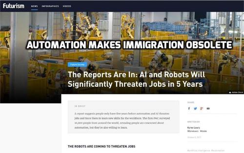 Certainly it makes sense for America to chill seriously on immigration if a PwC projection noted below is correct that “38 percent of U.S. jobs are at risk of being affected by automation by the early 2030s.” It is crazy to continue importing foreign workers when the need for them is Zero in the near future.