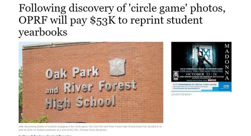 Graduation, however, is June 2, so this decision means that graduates won’t get a chance to sign each other’s Yearbooks with funny inscriptions until long after they’ve dispersed, which means most of them will never do it. So, this delay has lifetime implications for the graduates in denying them a sentimental souvenir of their high school years.Following discovery of ‘circle game’ photos, OPRF will pay $53K to reprint student yearbooks