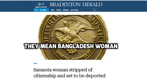 46-year-old Sarasota woman has been denaturalized and sentenced to six months in prison for obtaining her U.S. citizenship by lying to immigration authorities.Everyone who gets citizenship does that, and it's the reason she can be denaturalized.Munia Parvin, who also goes by Zarrin Hoque, pleaded guilty to the charges Sept. 26, according to acting U.S. Attorney W. Stephen Muldrow. She has been stripped of her citizenship and is subject to be deported to Bangladesh.