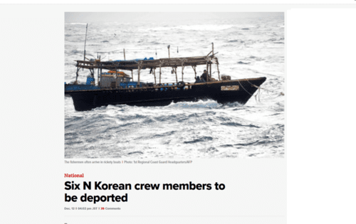 [Six N Korean Crew Members To Be Deported, AFP/Japan Today, December 12, 2017]