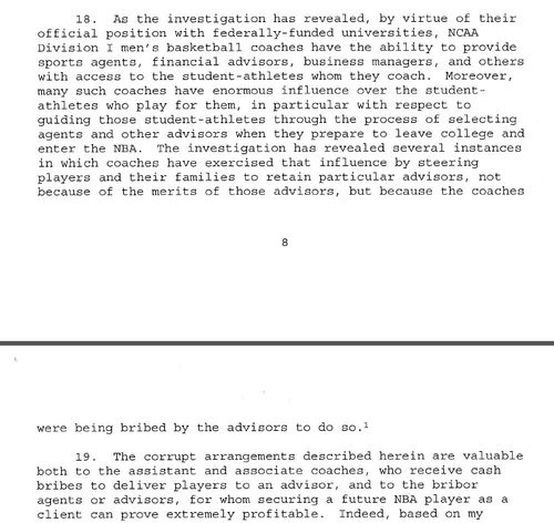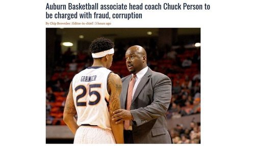 The four assistant coaches were identified as Lamont Evans of Oklahoma State University, Chuck Person of Auburn University, Emanuel Richardson of Arizona University, and Anthony Bland of the University of Southern California.The complaint against Chuck Persons and Rashan Michel [PDF] says, among other things, that there's a fortune available to any sports agent who can bribe a coach to influence an NCAA player to sign up with him:4 NCAA Basketball Coaches Charged With Taking Bribes by Tom Winter, Tracy Connor and Kalhan Rosenblatt, September 26,017