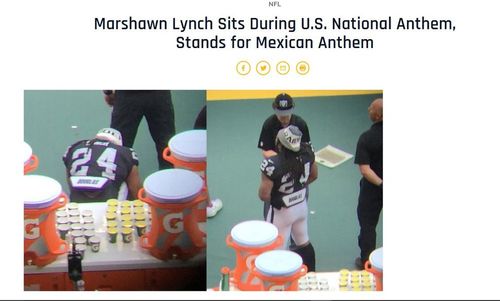 By Chris Chavez November 19, 2017Marshawn “Beast Mode” Lynch’s Raider’s lost 33-8. I’m guessing that the Patriots’ Tom Brady stood respectfully during the playing of both anthems.Oakland Raiders running back Marshawn Lynch sat during the Star-Spangled Banner but then stood up for Mexico’s national anthem before Sunday afternoon’s game against the New England Patriots in Mexico City.