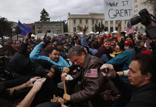 A number of the pro-Trump people were beyond middle age but they were attacked nevertheless by the young anarchists.