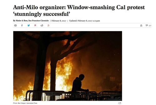 Anti-Milo organizer: Window-smashing Cal protest ‘stunningly successful’[Comment at Unz.com]By Matier & Ross, San Francisco Chronicle, February 8, 2017