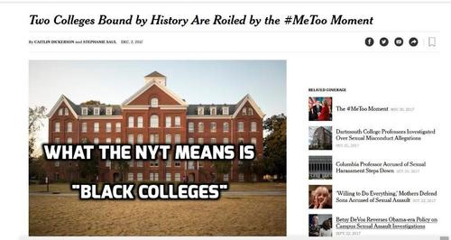 The NYT goes one about other, whiter campuses, and then gets back to the black ones, where blacks have been protesting against the the rape of black women by black men under a black administration: