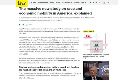 The massive new study on race and economic mobility in America, explainedThis seems to be a Thing among female SJWs lately: announcing how exhausted you are by people not automatically submitting to your arguments.Even black men born to wealthy families are less economically successful than white men. By Dylan Matthews @dylanmattdylan @vox.com Mar 21, 2018, 7:30am EDT