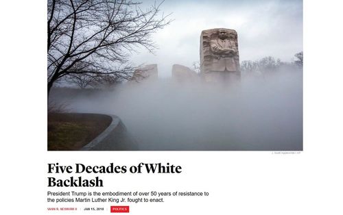 In other words, despite all the anti-white, anti-discrimination laws passed, despite the trillions given to blacks who don’t work and won’t stop having illegitimate children, despite all the apologies and statue removals, black writer Vann R. Newkirk II [Email him] says blacks have been suffering under “five decades of white backlash.”