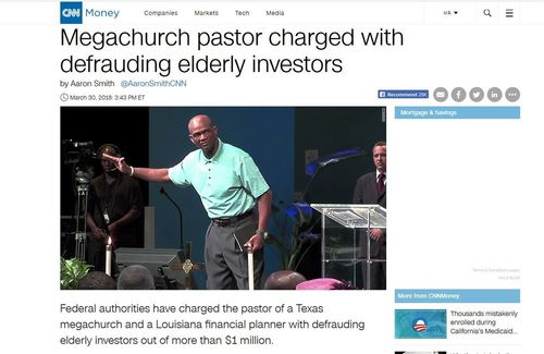 Megachurch pastor charged with defrauding elderly investors by Aaron Smith, CNN, March 30, 2018Caldwell's been mentioned on VDARE.com before, because he was namechecked in George Bush's famous speech on increasing "minority homeownership", i. e. debauching the credit standards of lenders and causing the 2008 Minority Mortgage Meltdown:Kirbyjon Caldwell of Houston and Gregory Alan Smith of Shreveport were charged Friday with six counts of wire fraud and five counts of money laundering, as well as one count of conspiracy to commit wire fraud and one count of conspiracy to commit money laundering, the Justice Department said.
