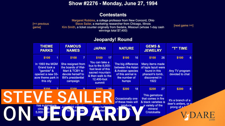 I’ve never seen a video of my June 27, 1994 appearance on Jeopardy!, but J-Archive has all the action in summary form at: