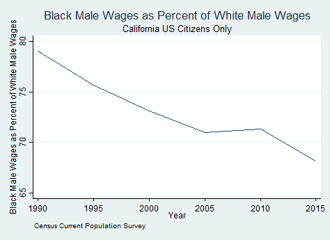 In general, the New Tech/Hollywood Economy of California has been lousy for black workers …black wages have fallen as a fraction of Asian wages in California even faster: