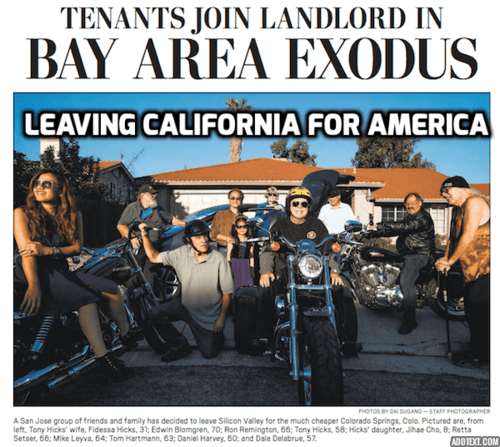 ‘Unsafe and too expensive’: Landlord leaving San Jose, taking tenants with him, KTVU.com, February 23, 2018SAN JOSE, Calif. (KTVU) – In the heart of Silicon Valley, the high price of real estate, coupled with a perceived low quality of life, are pushing some residents to move elsewhere. One landlord, after taking inventory of everything – from cost of living to earthquake probability to quality of life and new state laws – has decided now is the time to leave for greener pastures, and he’s taking his tenants with him.