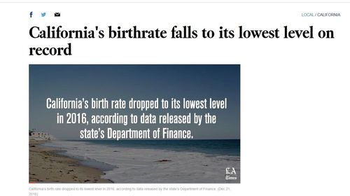 Between July 2015 and July of this year, there were 12.42 births per 1,000 Californians, the agency said this week. The last time the birthrate came close to being that low was during the Great Depression, when it hit 12.6 per 1,000 in 1933. …