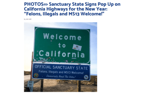 The sign has three lines. The first says “Official Sanctuary State” which is, after all, what California’s government has announced itself as.