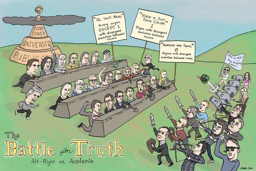 A detail features Jared Taylor and Peter Brimelow, the latter identifiable by his needing a haircut.