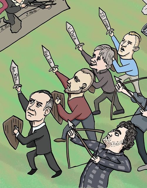 Pictured Holding swords: Jared Taylor, Henrik Palmgren, Peter Brimelow, and Nathan Damigo.
