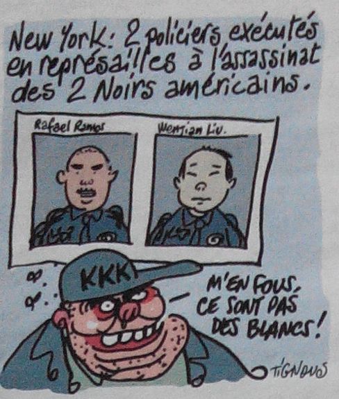 Tignous seemed to feel that there are two American races, the white and non-white, and there exists a large segment of racist whites—who don't shave or wash—who would dismiss the murder of Wenjian and Ramos on that basis.