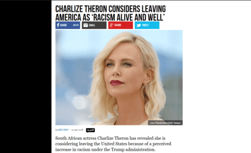 So Charlize Theron, the South African actress, says America is too racist a place to reside.