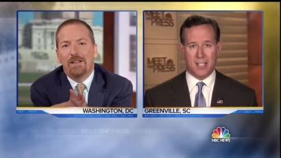 CHUCK TODD:This is all strong patriotic stuff that you won't be hearing from Jeb Bush. Chuck Todd was acting like he'd never heard it before. For previous Santorum coverage seeObviously, you're known more as an economic populist, really, than any other Republican in this field. And it's interesting to me, while a majority of the country favors a candidate who supports, say, raising taxes on the wealthy or raising the minimum wage, the Republican Party itself isn't there. Do you worry that you're out of step with the Republican primary voters, even if you're in step with general election voters?