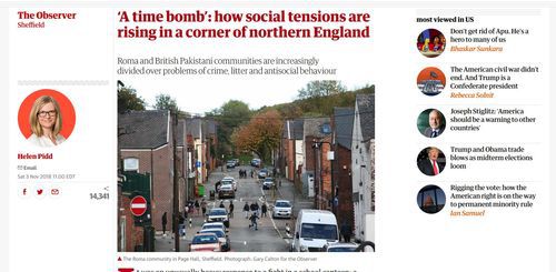 … Angry Fir Vale parents – most Pakistanis, no Roma – shouted at a panel of wincing white council workers about “them”. Their new Roma neighbours. “David Blunkett was right!” yelled one man. “This is a ticking time bomb. If it goes off, you’re going to need the army.”