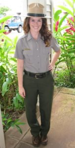 [Pictured above right: lady ranger in Smokey The Bear Hat, pictured right, lady Border Patrolman with hairband and vest.]However, some of the jackets look about the same. But then again, I’m not an expert on subtle color distinctions.