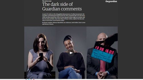 [The Dark Side of Guardian Comments,, by Becky Gardiner, Mahana Mansfield, Ian Anderson, Josh Holder, Daan Louter and Monica Ulmanu, April 12, 2016 ]