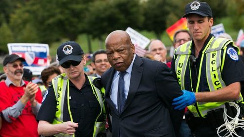 Plus, Lewis is not just an amnesty voter and chatterbox from hell — he has applied his civil rights pixie dust to illegal immigration by using the historic style of marches, civil disobedience and arrests to the issue. In doing so, he equates black Americans’ pursuit of long-denied civil rights with invasive foreigners’ demands for equality with citizens. In 2013, he was one of eight uber-left Democrats who were arrested in a pro-amnesty action in DC when they blocked a street.